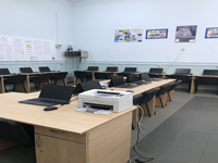 - 2 cabinet de informatică cu dotare corespunzătoare şi anume: mobilier special confecţionat şi 2 rețele cu 30 și 31 laptopuri legate în reţea, 3 imprimante şi acces la INTERNET prin linie închiriată de societatea RDS